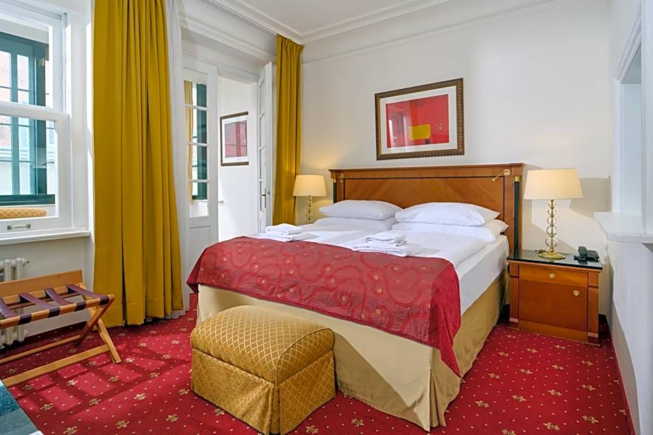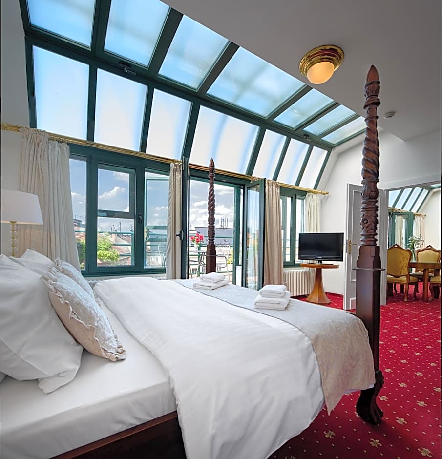 Large room with a separate living room. Some with a balcony and view of Prague Castle and Petrin Hill.